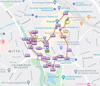 A red stripe on the ground guides visitors through the city centre - the ‘Red Thread’. Over a distance of 4.2 kilometres, it shows over 30 sights, including churches, squares and museums. The tour is self-guided and ideal for anyone who wants to explore Hanover on foot. A matching brochure or app provides information on each stop.