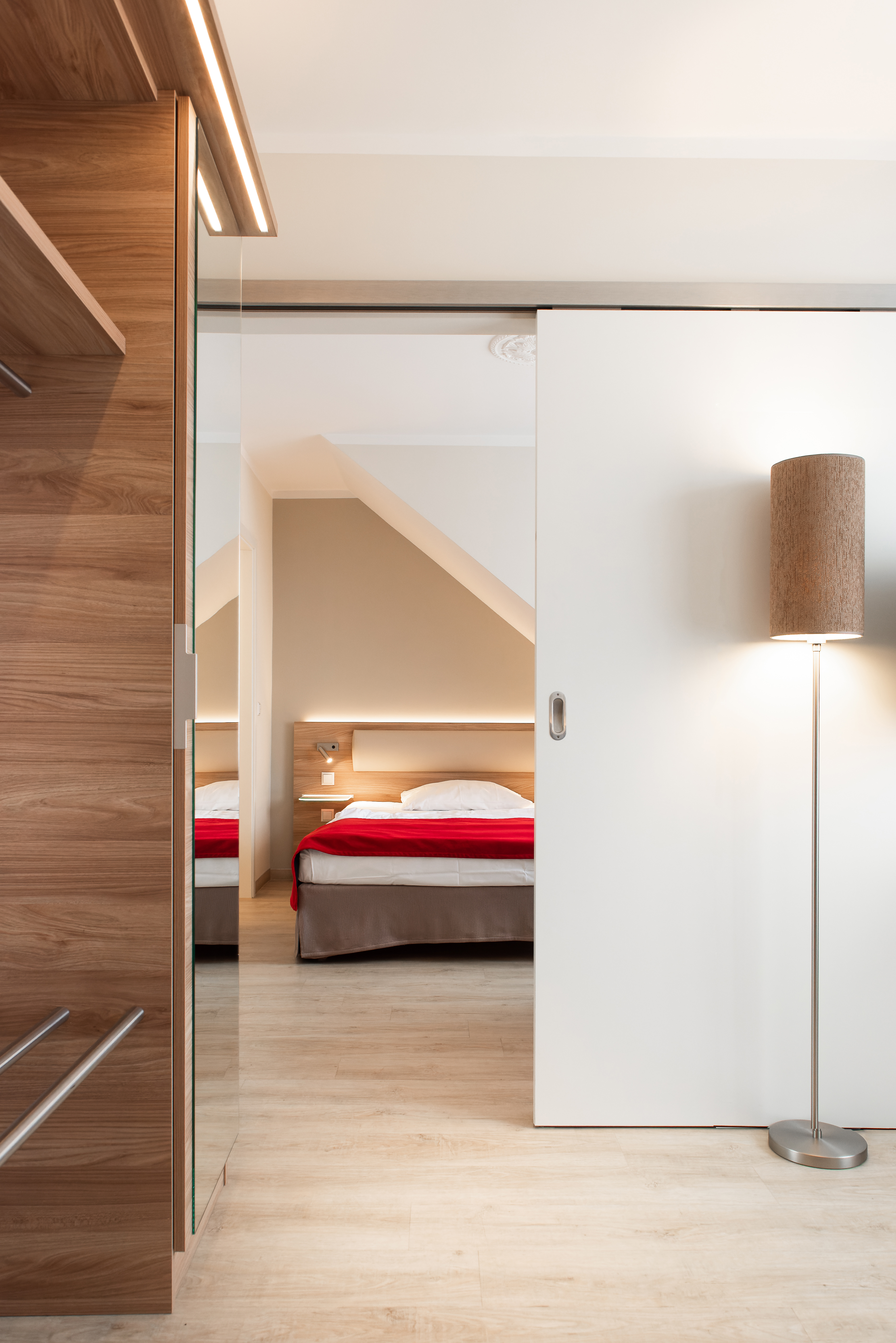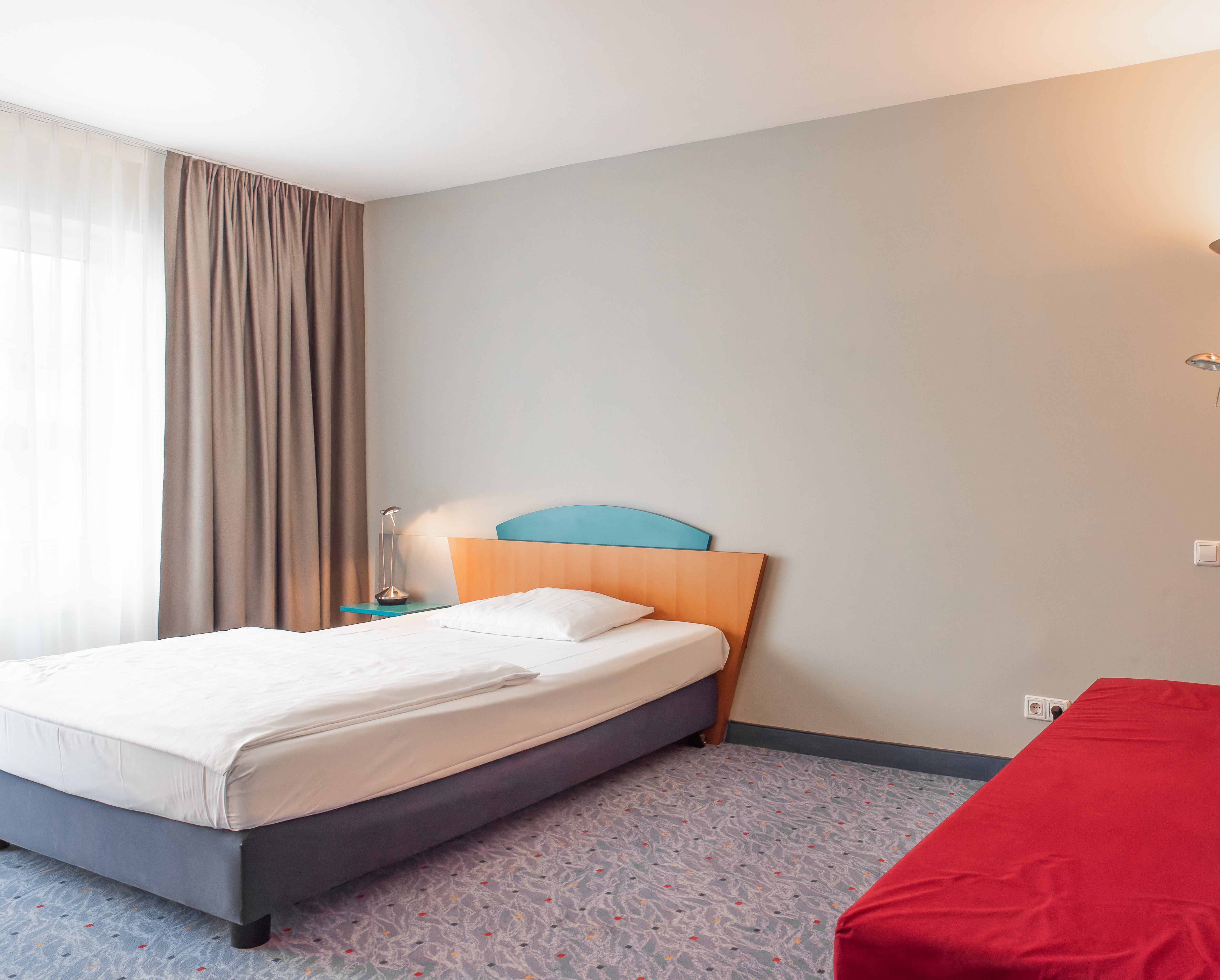 Our deluxe triple rooms offer stylish comfort for up to three people on approx. 27 m². They have the same modern design and high-quality furnishings as our deluxe double rooms - including the comfortable double bed. In addition, a separate, private area with a sofa bed offers ideal sleeping accommodation for a third person - perfect for families or friends travelling together who still value individual retreats. Facilities also include a spacious desk, a bathroom with shower, WC, flat-screen TV, free Wi-Fi, telephone, mini fridge and hairdryer. Some rooms also have a smoker-friendly balcony - for relaxing moments in between.